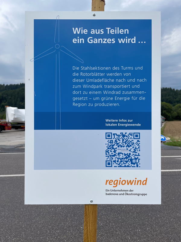 Tag und Stunde des Transports auf den Roßkopf stehen nun fest: In der Nacht zum Donnerstag, den 28. 08. 2025, soll das erste Rotorblatt gegen 4 Uhr morgens den Platz verlassen. Auf einem Selbstfahrer wird es nochmals durch Ebnet, dieses Mal in Richtung Freiburg, gefahren.