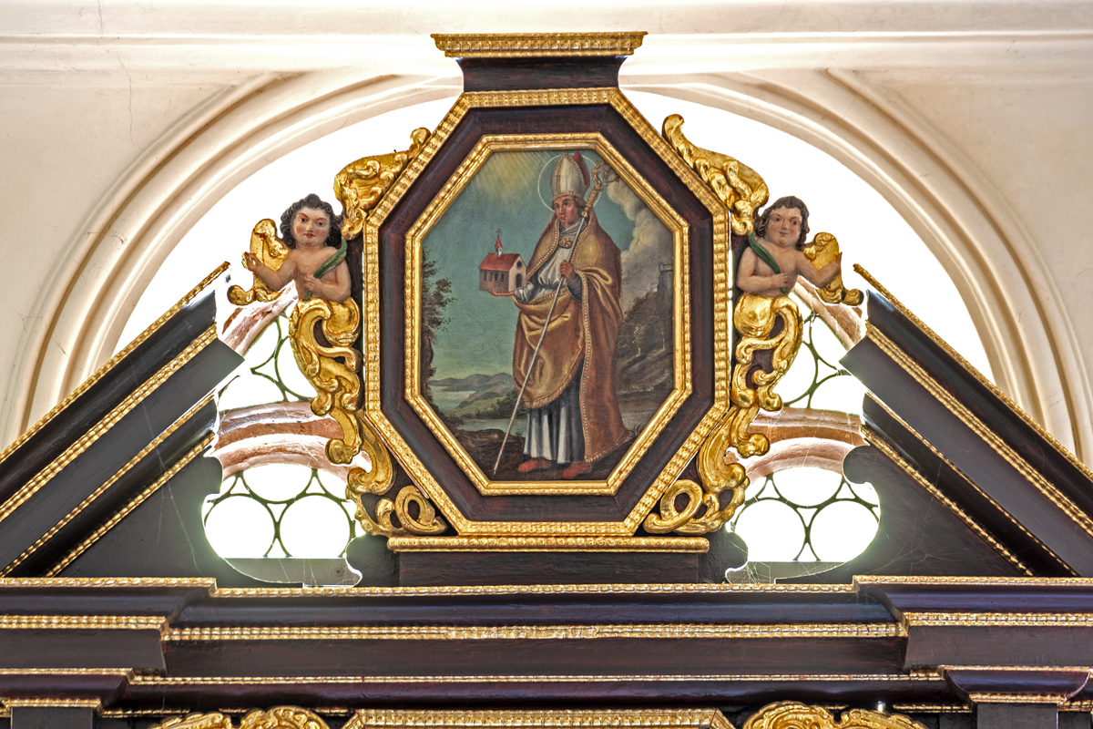 (*um 660, †720) geschaffen 1666, vermutlich gefertigt vom Schnitzer der Altarplastiken. Der Krummstab, den sie in der linken Hand hält, weist sie als Äbtissin aus; der Kelch mit Buch und den zwei Augen weist darauf hin, dass sie blind geboren wurde.