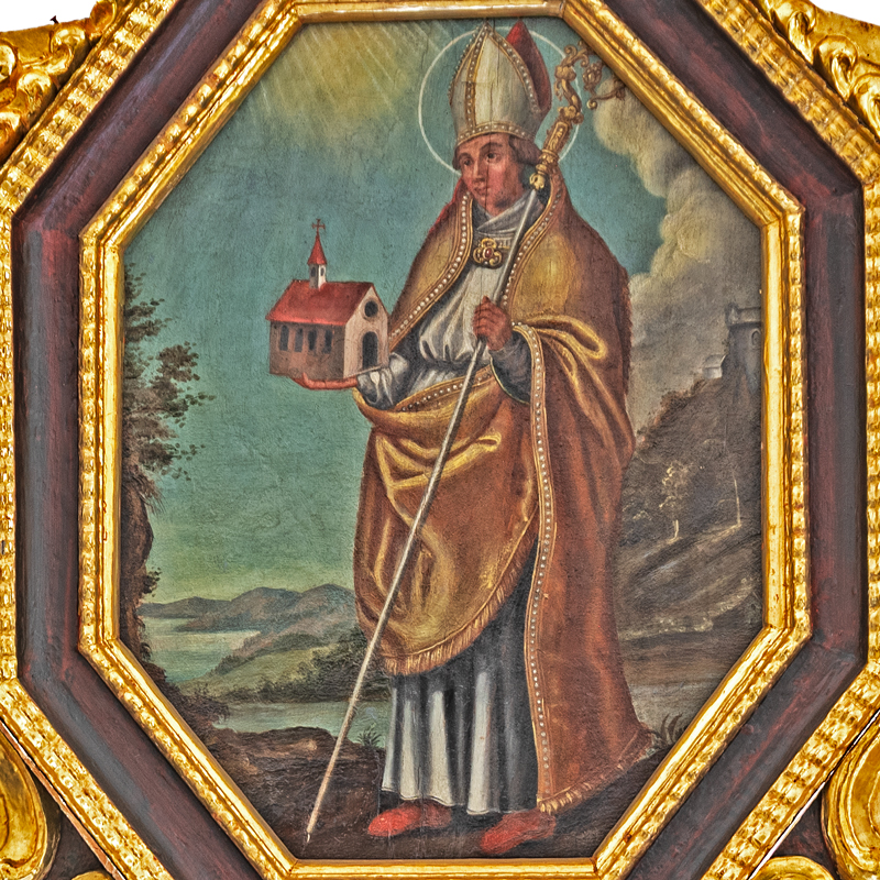 Im Hauptbild des Hochaltars sind die hl. Lucia, die hl. Ottilie und der hl. Jodokus dargestellt, im Oberbild der hl. Maternus.