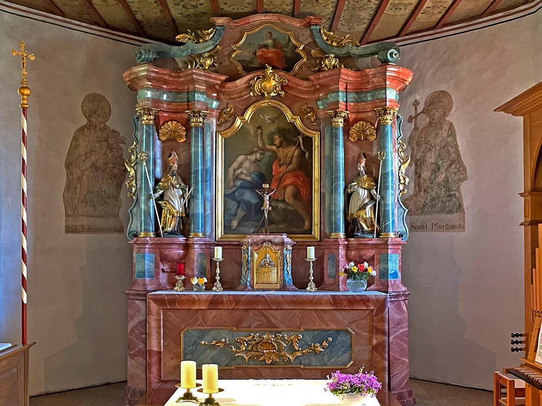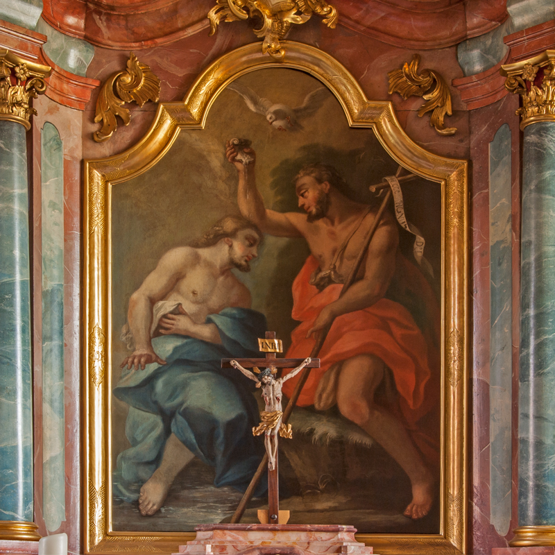 Im Zentrum des Hochaltars ist Johannes den Täufer bei der Taufe Jesu dargestellt.