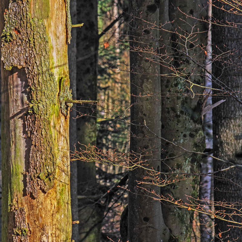 Entdeckungen, die von der Tageszeit, dem Wetter und den Jahreszeiten abhängen, vor allem aber von der Offenheit und Bereitschaft sich Zeit zu nehmen und den Weg nicht nur einmal zu begehen. Manche der fotografischen festgehaltenen Eindrücke könnten daher auch an vielen anderen durchgängig bewaldeten Weg aufgenommen sein.
