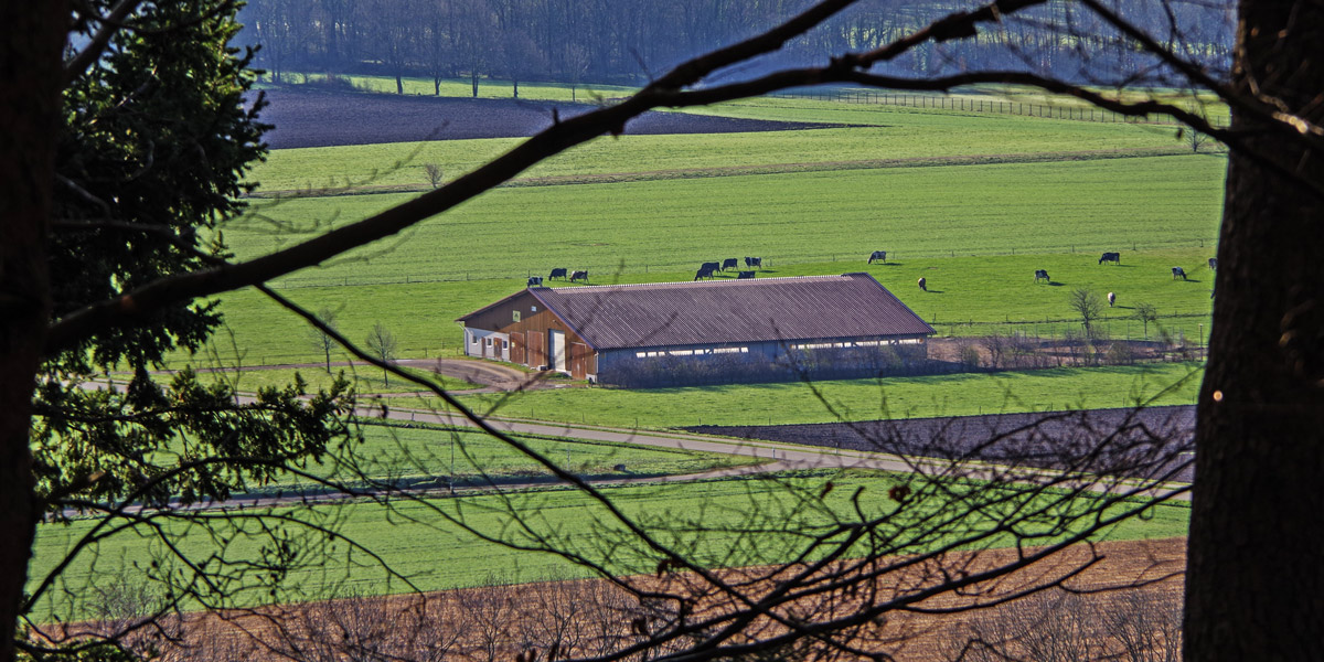 Der Milchvieh-Freilaufstall der Familie Reichenbach an der Landstraße L133 zwischen Ebnet und Stegen