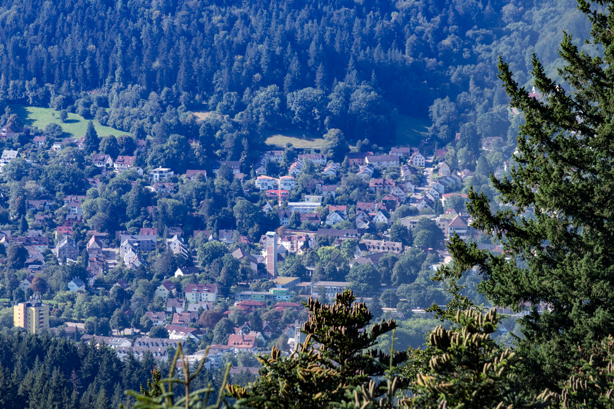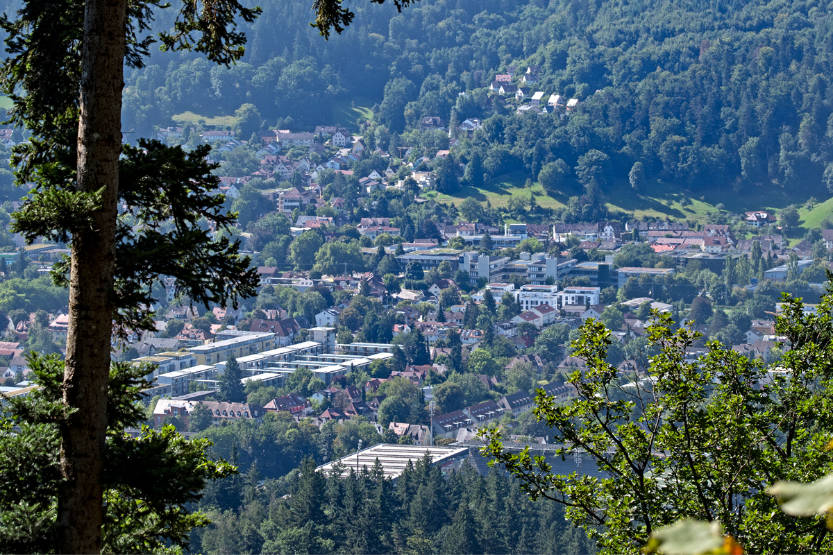 Nicht weit vom „OTTILIEN-Stein“ entfernt erlaubt lichter Wald Blicke ins Dreisamtal.