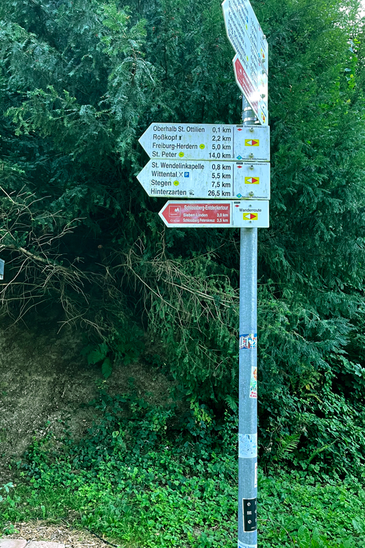Seit dem Wasserschloss läuft man auf dem „Ottilienschleifweg“, so jedenfalls auf dem gedruckten Stadtplan von Freiburg. Es sind die letzten Meter zum Ausgangspunkt des Rundwegs.
