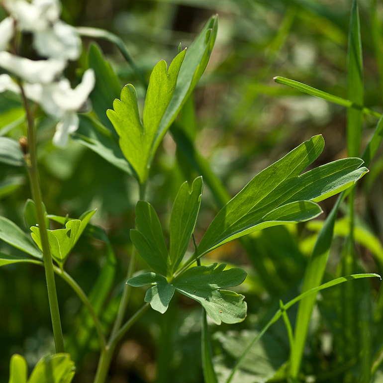Hinweis: Die Tragblättchen des Gefingerten Lerchensporns (Corydalis solida) sind fingerartig geschlitzt.