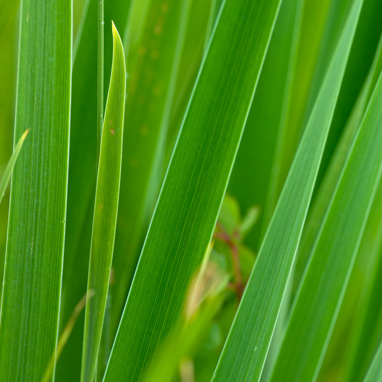 Stängel hohl, rund; Laubblätter 30 bis 80 cm lang, scharfkantig, sehr schmal, 2 bis 6 mm breit, parallelnervig: schwertblättrig. Die Laubblätter erreichen nicht die Höhe des Blütensprosses.