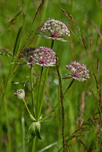 Die Großen Sterndolde (Astrantia major) ist eine 30 – 90 cm hohe, weiß blühende, mehrjährige, krautige Pflanze, wächst auf Wiesen, in Gebüschen, Wäldern, meist auf Kalk bis 2300 m.