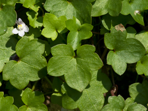 Artname cymbalaria, griechisch kymbalon = Zimbel oder Schallbecken,