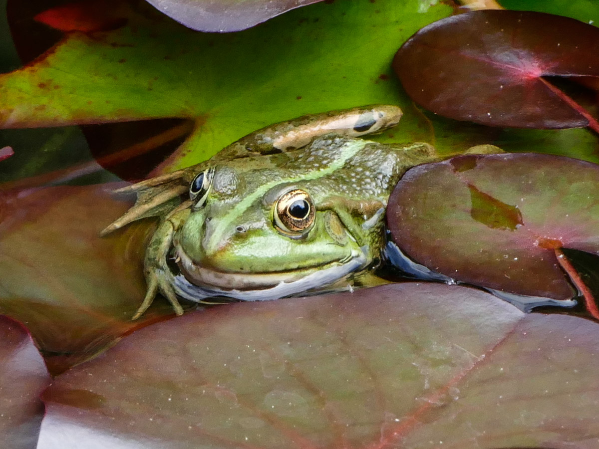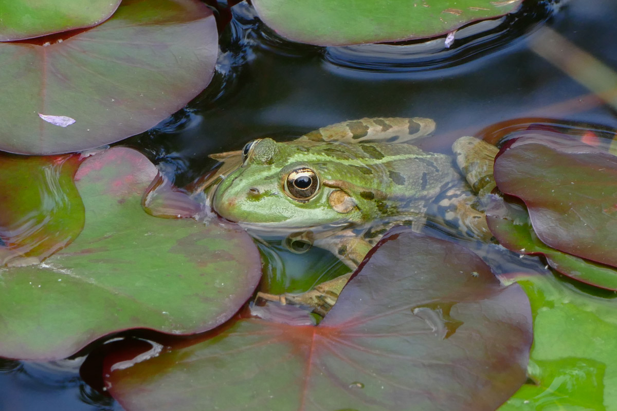 Seefrosch (Rana ridibunda) im Kaltwasserteich des Botanischen Gartens der Universität Freiburg