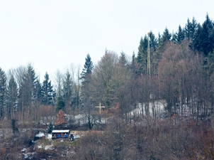 dem „Galgenberg“ ein Holzkreuz.