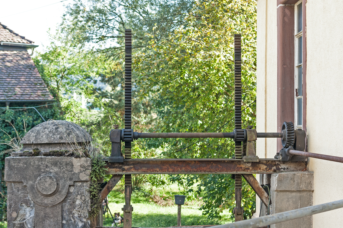 Stromschlössle – Freiburger Kartause: Hebevorrichtung der Stellfalle südöstlich des Gebäudes