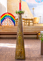 Gestaltung und von seiner Platzierung her sollte er den Bezug zum Altar, dem „Hauptort“ der Messfeier