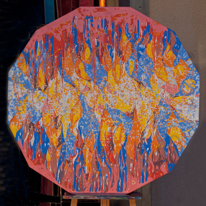 Vier Tafeln (Öl/Hartfaser) von Ilse Altrogge zum Orgelzyklus von Olivier Messiaen - von rechts nach links: