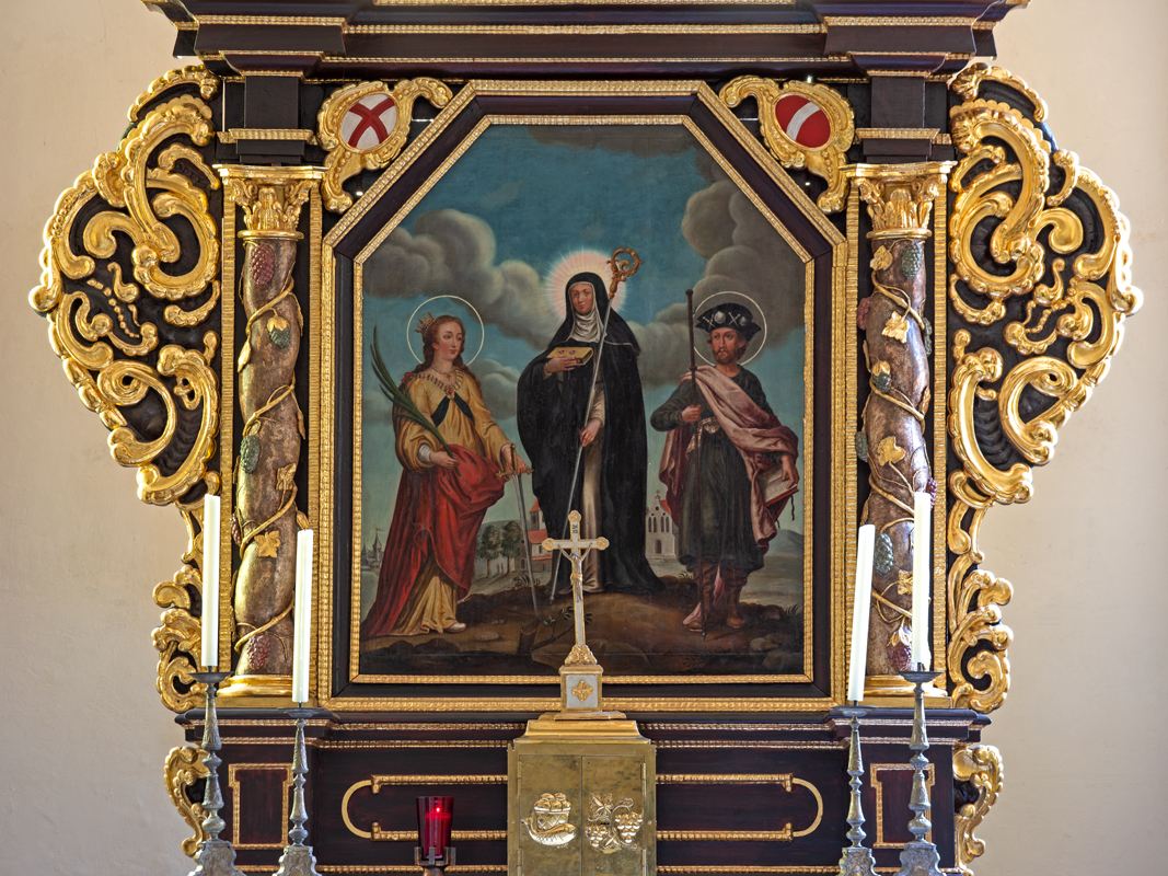Im Hauptbild des Hochaltars sind die hl. Lucia, die hl. Ottilie und der hl. Jodokus dargestellt, im Oberbild der hl. Maternus.