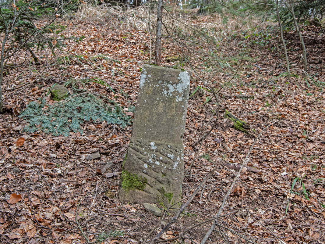 - Talseite des Grenzsteins, im Vordergrund ein Ausschnitt