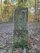 Grenzstein – Nummer nicht erkennbar – am Kammweg zwischen Roßkopfturm und Beginn der Borderline-Mountainbike-Strecke mit Blick nach Osten