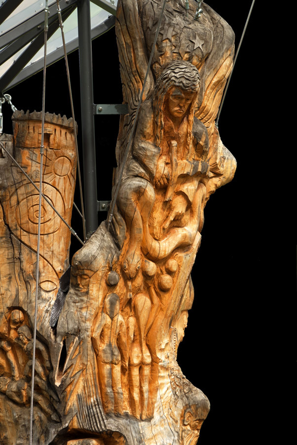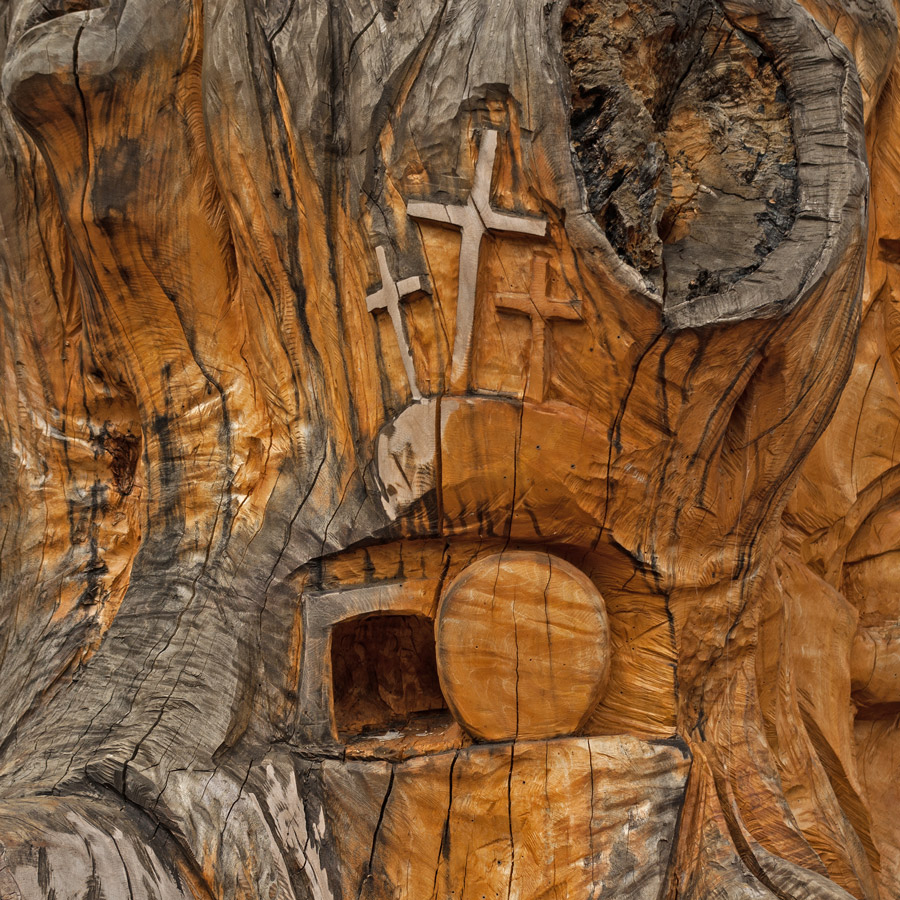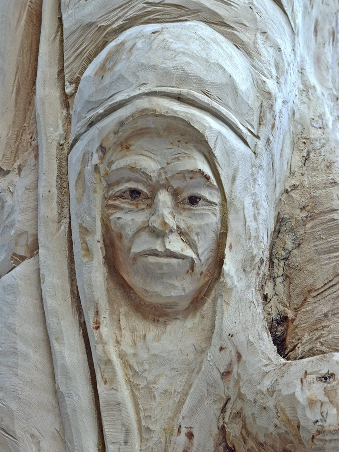 Auf der rund 20qm großen Fläche eines Bergahorn-Stamms ließ er biblische Geschichten lebendig werden: Szenen aus dem alten und dem neuen Testament.