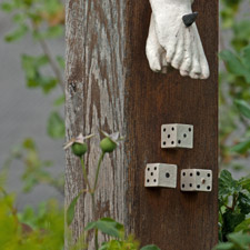 Foto in der Mitte: Würfel mit denen die römischen Soldaten unter dem Kreuz um den Rock Christi feilschten
