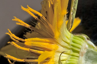 Blütenkörbchen und Stängel, aufgeschnitten, mit austretendem Milchsaft.