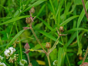 Blütenkelch bauchig, fünfzähnig, rötlich, stark behaart, bei männlicher Pflanze mit 10 Nerven, bei weiblicher mit 20 Nerven.