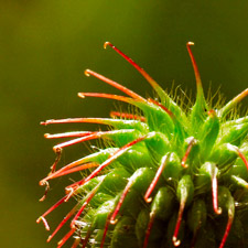 Deutlich sind im rechten Foto die flachen, behaarten Nüsschen zu sehen, die eine hakenförmige Granne – den ehemaligen Griffel – besitzen.