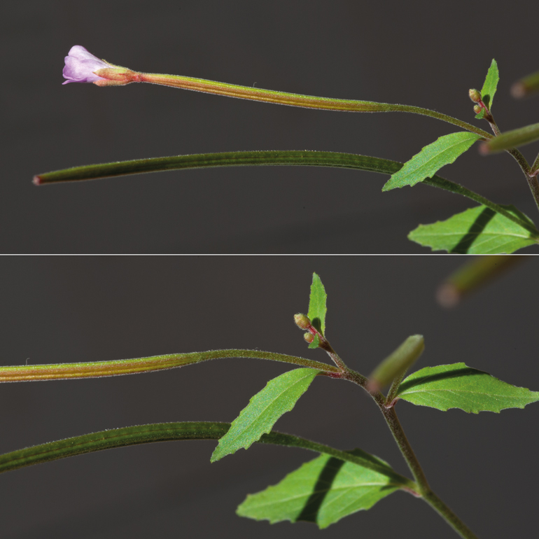 Berg-Weidenröschen (Epilobium montanum):Blüte mit langem, unterständigem, gelblich grünem Fruchtknoten