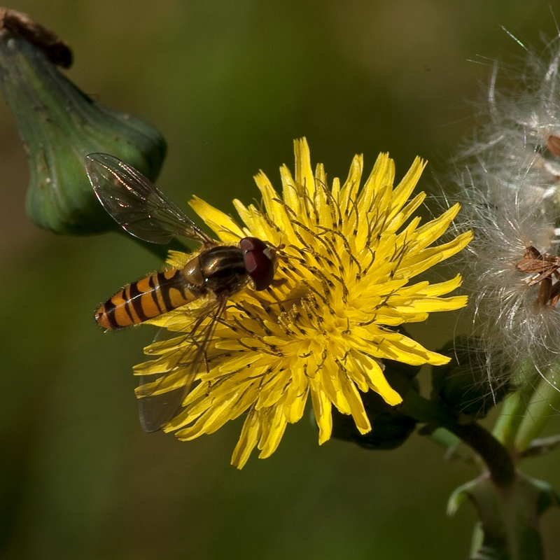 Hainschwebefliege - Episyrphus balteatus - auf der Blüte einer Dornigen Gänsedistel