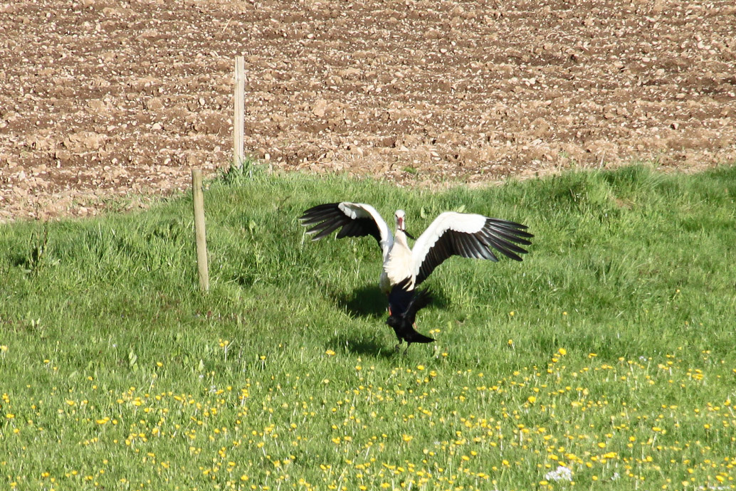 Futtersuche auf den Wiesen und Äckern am östlichen Ortsrand von Ebnet (mehr Fotos beim Pflügen des Ackers)
