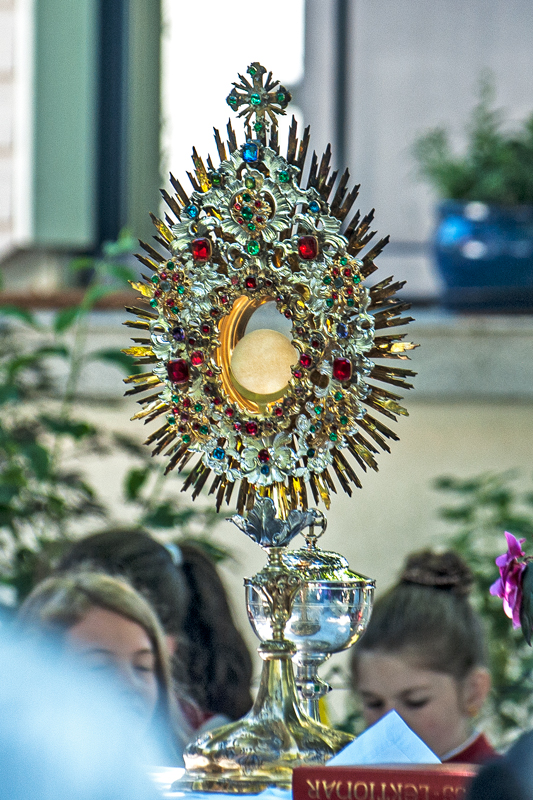 Fronleichnam wurde 1264 in den Kirchenfestkreis eingeführt. Es ist ein Hochfest im Kirchenjahr der katholischen Kirche, mit dem die leibliche Gegenwart Jesu Christi im Sakrament der Eucharistie gefeiert wird.