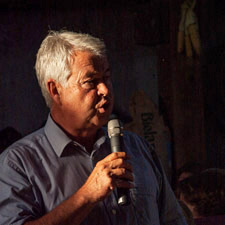 Foto links: Hans Kuntzemüller, 1. Vorsitzender des Musikvereins, kündigt das gemeinsame von Chor und Orchester präsentierte Stück "Dry Your Tears, Africa" an.